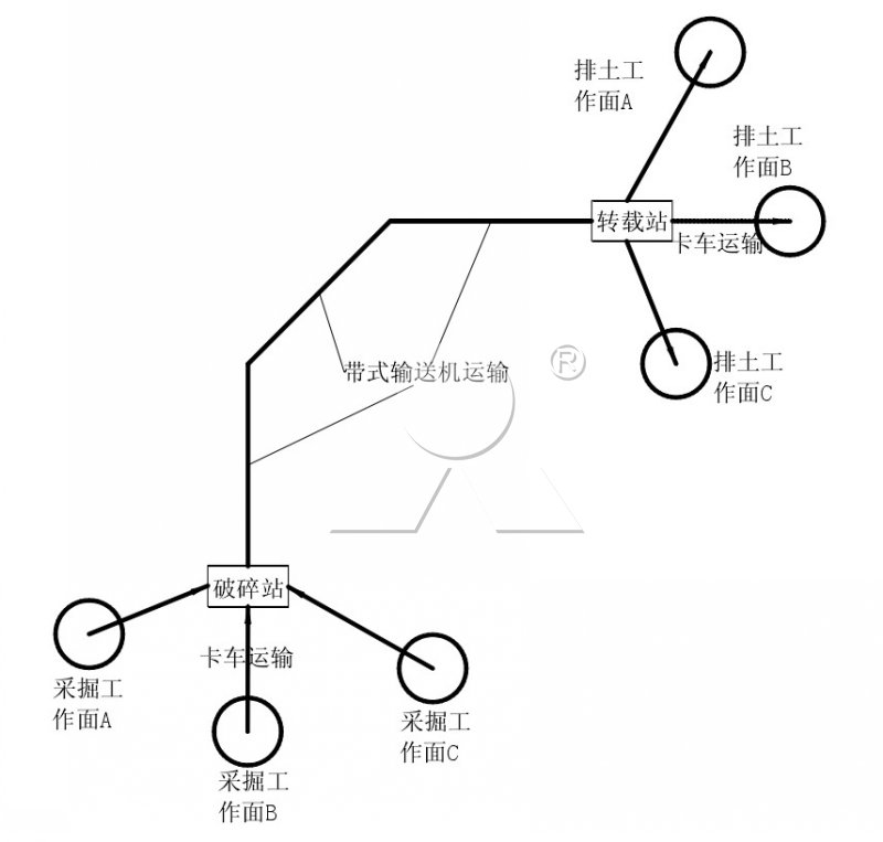 ④排土場有適宜的空間條件布置物料轉(zhuǎn)載站。