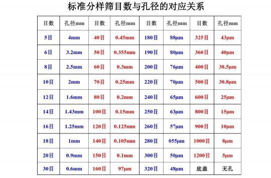 篩網(wǎng)目數(shù)和孔徑對照表